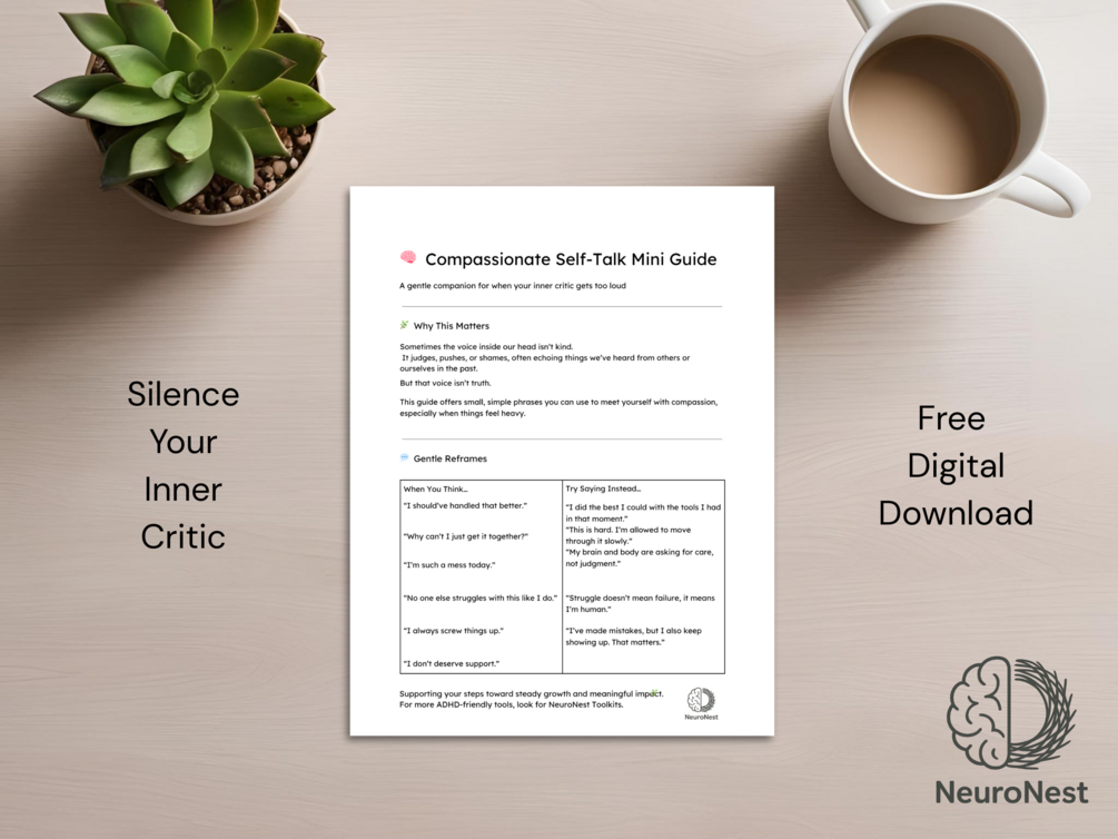 Compassionate Self-Talk Mini Guide | NeuroNest Toolkits